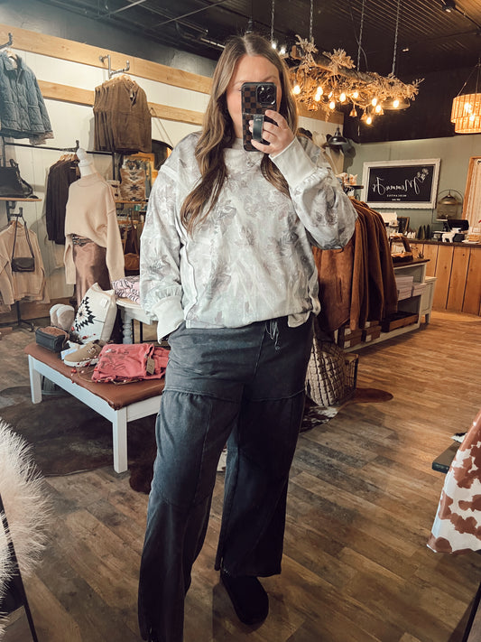 GRAY CAMO PATCHWORK SWEATSHIRT