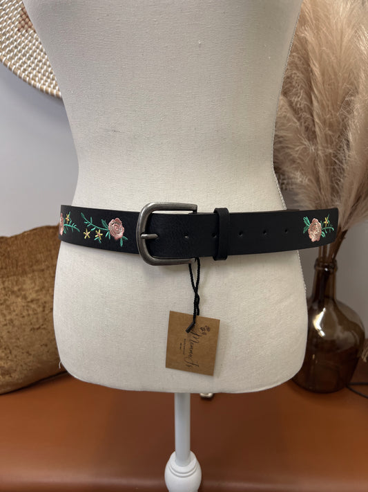 FLORAL EMBROIDERED HORSESHOE BUCKLE LEATHER BELT
