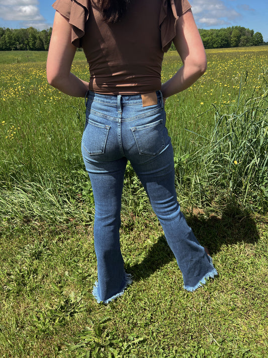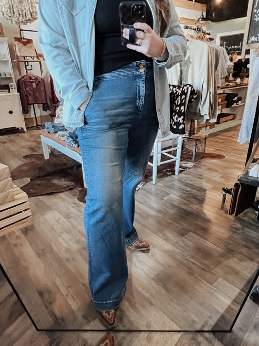 RISEN: TUMMY CONTROL HIGH RISE BOOTCUT DOUBLE BUTTON JEAN