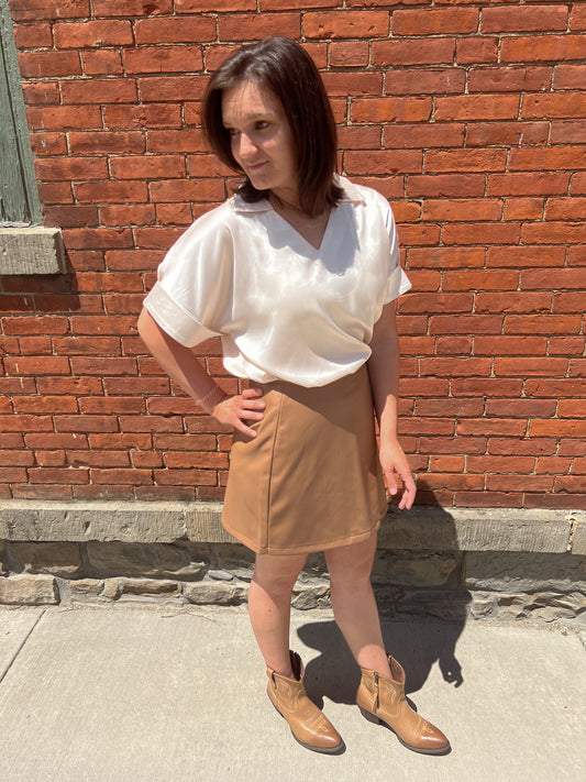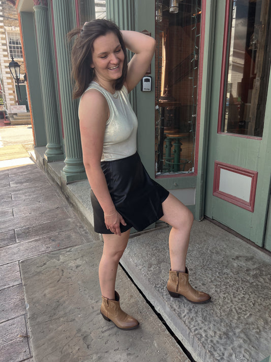 Sold outWALK THE LINE LEATHER SKIRT: RUST