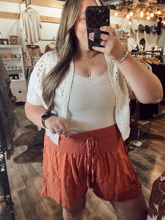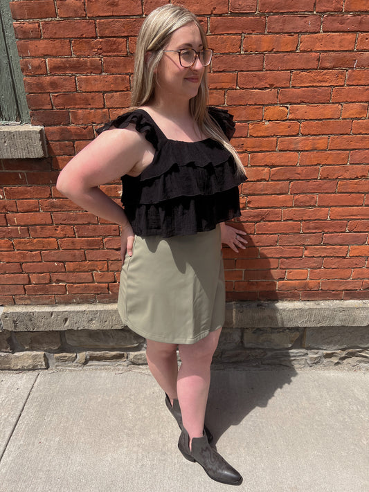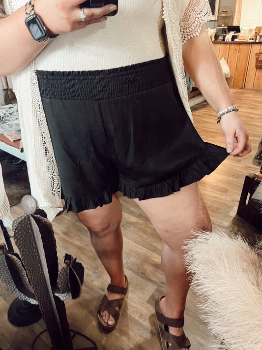 Sold outRUFFLED HEM HIGH WAIST SHORTS