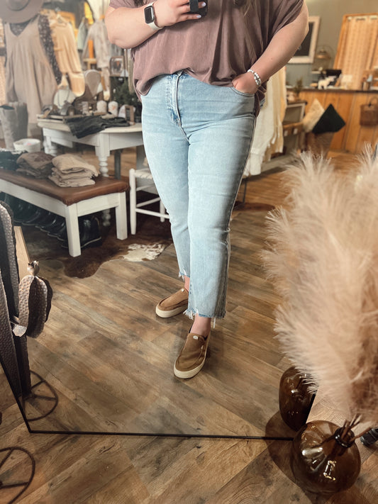 SIDE SPLIT HEM STRAIGHT LEG CROPPED JEANS