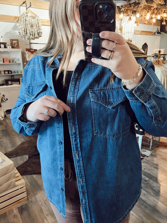 WESTERN YOKE DENIM SHIRT: DARK WASH