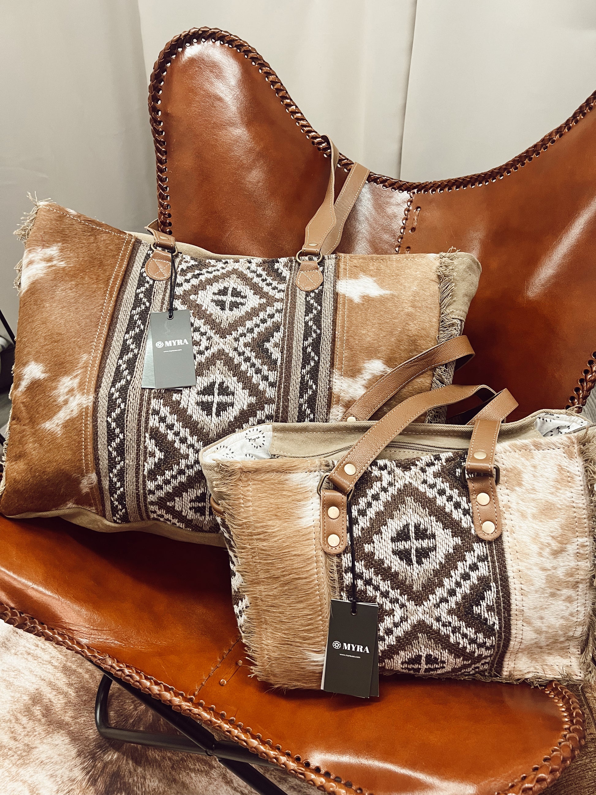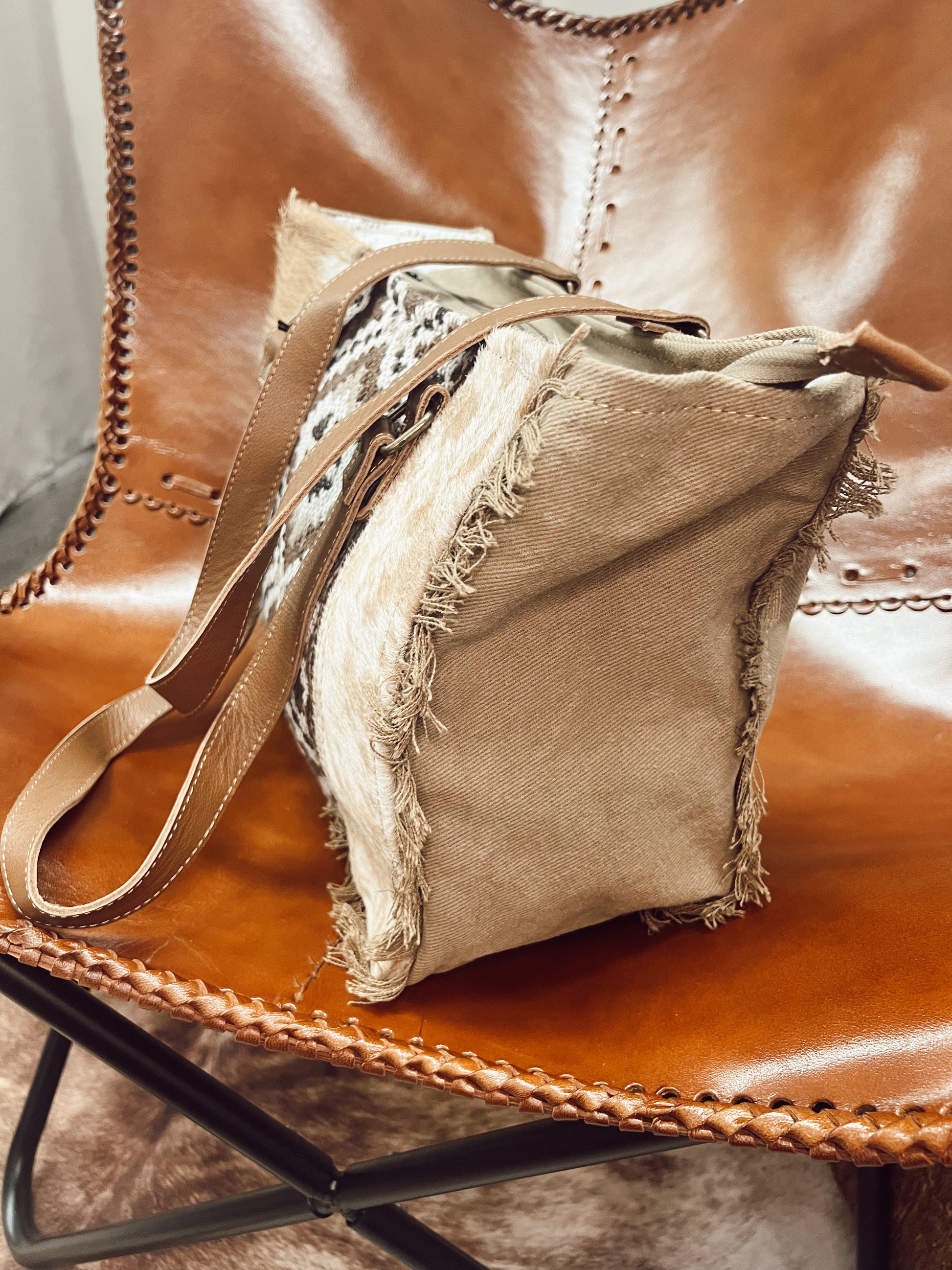 - Your next everyday bag! It is made of cowhide and vintage fabrics with colors that match any outfit.